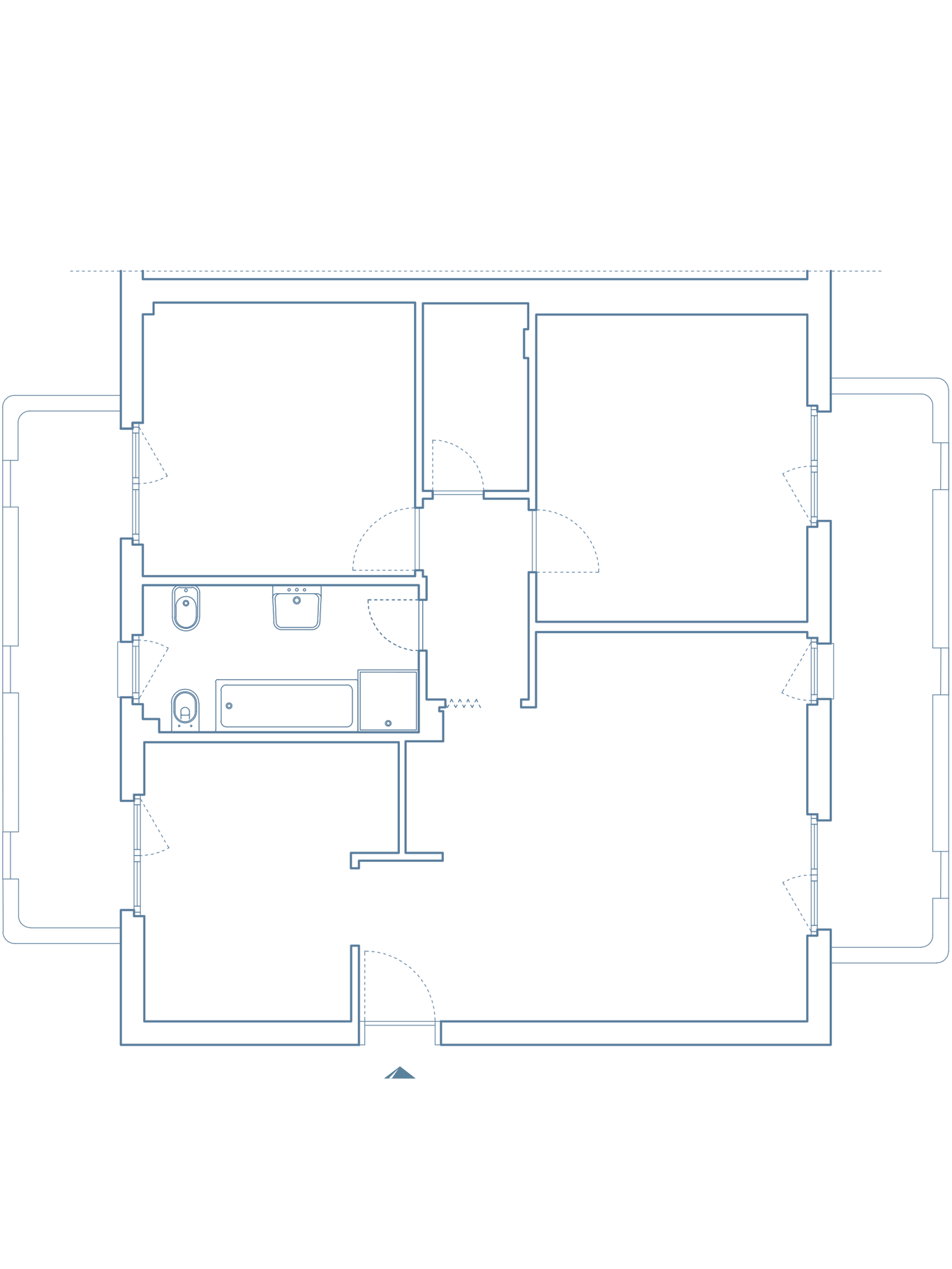 The redesigned bathroom features soothing shades of sand and powder blue, with a spacious walk-in shower that has replaced the bathtub to better suit the client’s preferences for daily comfort.
